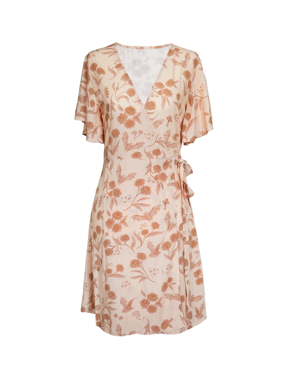 Embrace effortless elegance with the Blush Meadow Floral Wrap Dress. Designed in a soft beige-blush tone with delicate earthy floral prints, this dress captures a romantic and timeless charm perfect for any season.